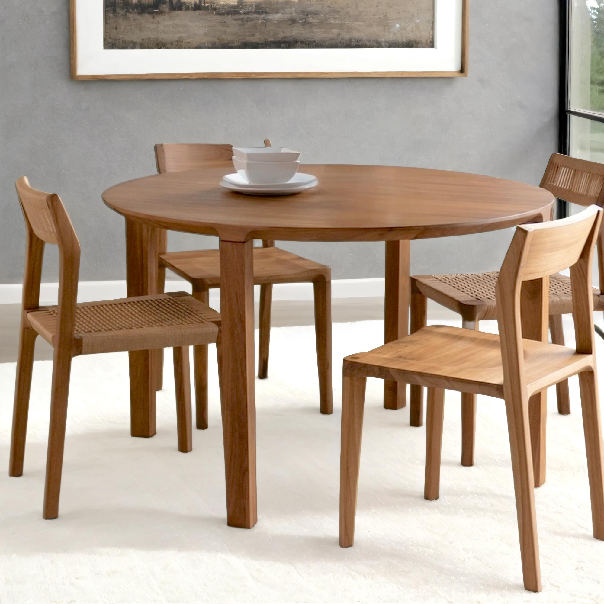 The right dining table starts with the right fit. Whether you have a spacious open-plan layout or a compact dining nook, aligning the table’s shape and dimensions to your room layout ensures smooth movement and a harmonious flow. For long, narrow spaces, rectangular teak tables provide balance and symmetry. In square or smaller areas, round or oval designs can soften the layout and foster a cozy, communal feel.