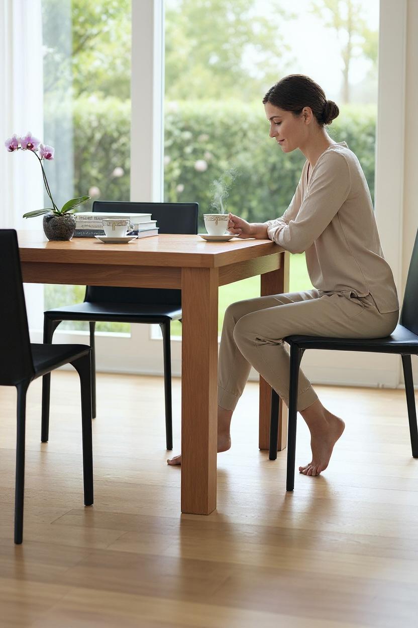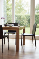 Rooted in Japandi harmony, the Aapri Dining Chair blends Japanese simplicity with Scandinavian warmth. Its slim steel frame and softly curved seat echo balanced design and mindful craftsmanship. Upholstered in Black recycled leather, the texture invites touch while the form encourages stillness. Designed for modern homes that value calm over clutter, the Aapri chair transforms everyday dining into a quiet, tactile ritual of comfort and beauty.